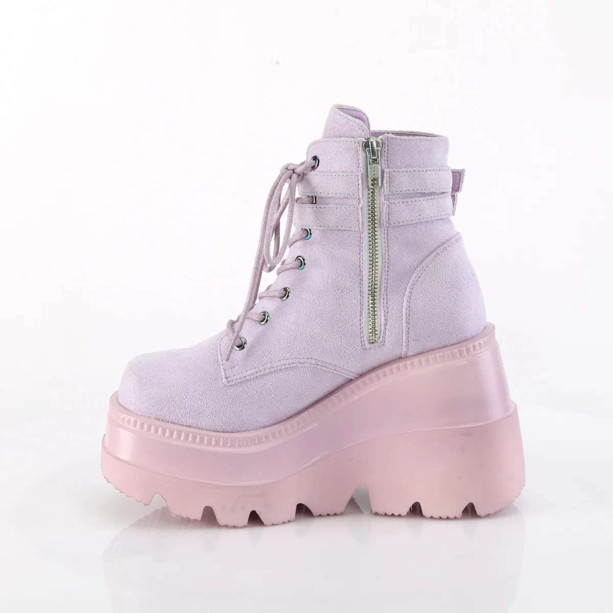 Elevate your alternative style with the Shaker-52 ankle boot. These boots feature a commanding 4 1/2" wedge platform that adds height and attitude to any look. The lace-up front and double buckled ankle straps offer a secure fit and a touch of edginess. With an inside zip closure for easy on and off, these boots are perfect for the goth, punk, or alternative fashion lover on the move. Step into the Shaker-52 and make a powerful statement with its sleek black patent finish.